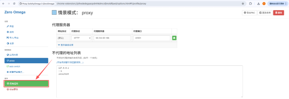 c. 应用代理:完成以上代理信息配置后,点击【应用选项】,使当前代理配置生效