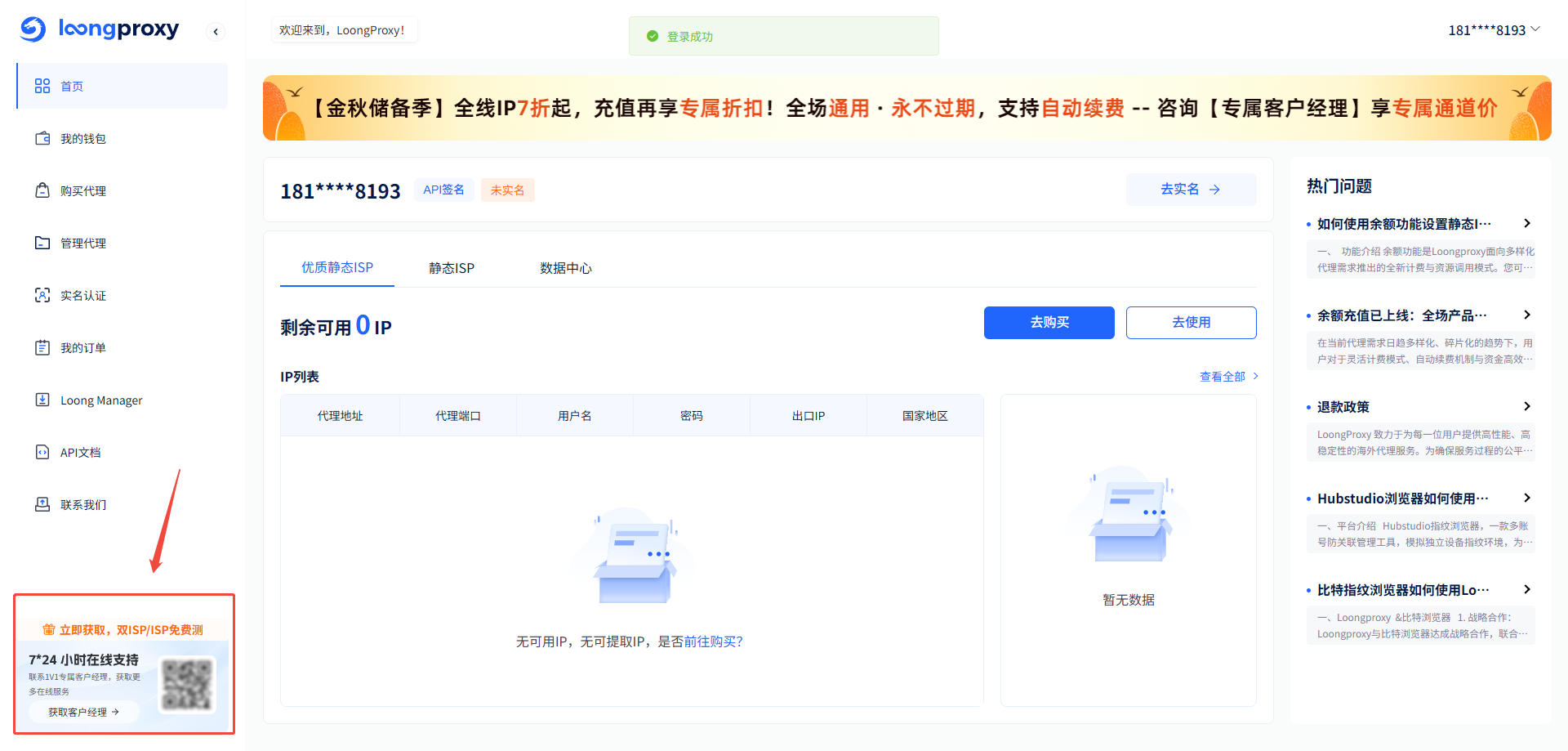 本文为您提供在LoongProxy进行支付时可能遇到的问题说明及对应解决方法。若问题仍未解决,您可随时联系在线客服或在个人中心左下角处添加您的专属客户经理协助解决。