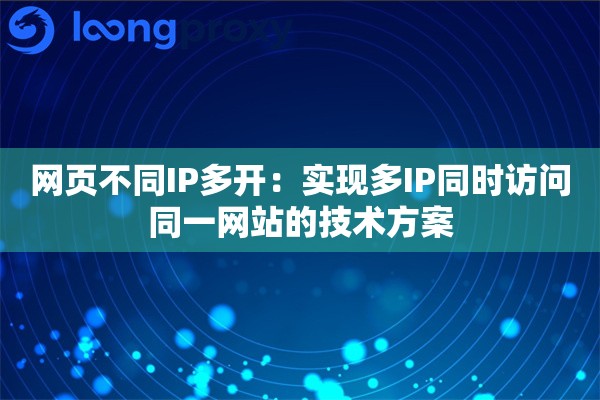 工欲善其事,必先利其器。一个稳定的代理IP来源是网页IP多开成功的基石。这里必须推荐一下我们自己的品牌——LoongProxy。