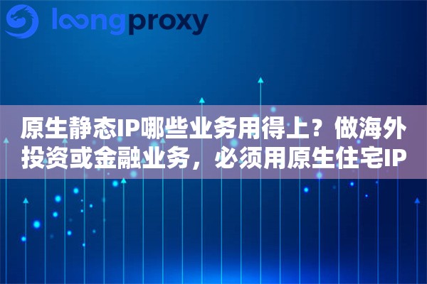 这个问题问得好。严格来说,不是所有海外投资或金融业务都非得用原生住宅IP,但如果你希望操作更稳、更不容易出问题,那确实强烈建议用这类资源。原因很简单:金融类平台的风控比电商和社交平台更严格。