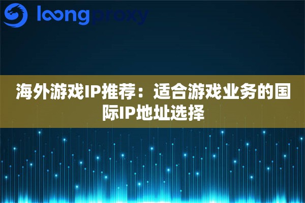 在海外游戏IP推荐这件事上,核心思路就一个:用最像“本地真人玩家”的IP。LoongProxy提供的各种国外静态IP和家庭IP代理资源,就是专门为这种高端游戏业务需求准备的,能帮你把游戏体验拉满。好的国际IP地址选择,就是赢在起跑线上。