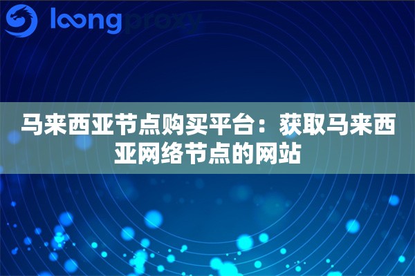 说到这儿,就不得不提LoongProxy这个平台了。它可不是那种玩票性质的野鸡网站,而是真正深耕静态代理IP领域的专家,尤其在马来西亚节点这块,资源那是相当扎实。