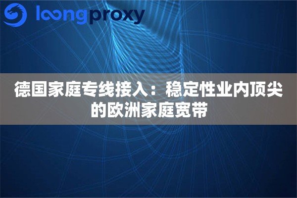说到德国家庭专线接入,很多人第一反应就是:稳。确实,这种宽带不是普通线路能比的,它依托的是当地实打实的家庭宽带资源,走的是正经运营商的路子。所以拿它来做代理,那延迟低、不掉线,几乎是业内顶尖的欧洲家庭宽带水准。尤其适合那些对网络质量要求高、业务不能断的场景。
