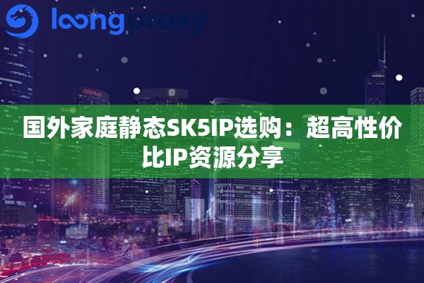 国外家庭静态SK5IP选购确实要费点心思,但核心就三点:稳定、纯净、区位准。超高性价比IP资源不是玄学,而是实打实的资源质量加合理定价。LoongProxy在这块布局挺清晰,从IP类型到覆盖地区都做得比较细,不管是跨境电商还是海外社媒,都能找到合适的解决方案。说到底,选IP如选战友,得靠谱才能长远。