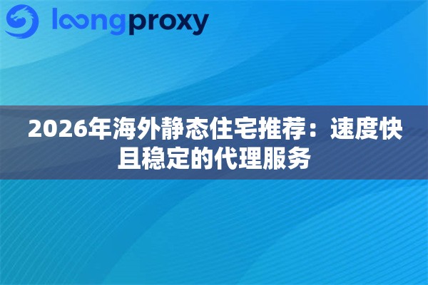 时间走到2026年,海外静态代理服务的需求只会增不会减。无论是跨境电商、海外社媒运营还是TikTok直播,一个速度快且稳定的代理服务已经成为刚需。LoongProxy这类提供真实静态住宅IP的服务商,凭借原生资源和本土化布局,确实能解决不少实际问题。