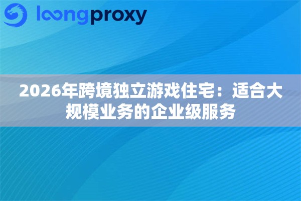 2026年做跨境独立游戏住宅,早就不是单打独斗的时代了。从用户注册到在线,从社区互动到直播带货,每个环节都得有对应的IP策略。LoongProxy这类服务商的价值就在于,能把复杂的网络问题打包成傻瓜式解决方案——你要做的只是专心搞游戏内容,网络脏活累活交给专业的人。