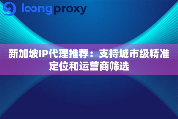 说到底,选新加坡IP代理,尤其是要求支持城市级精准定位和运营商筛选的,本质是选资源质量和技术控制力。LoongProxy在这块投入足、合作深,才能把IP代理做到如此颗粒度。如果你的业务正卡在IP精度这关,不妨细品一下“新加坡IP代理推荐”这几个字背后的分量——它可能正是你业务突围的那个关键支点。
