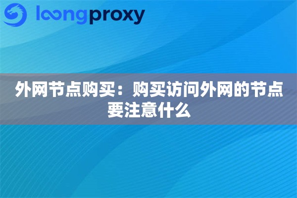 外网节点购买别踩坑,这些门道得摸清