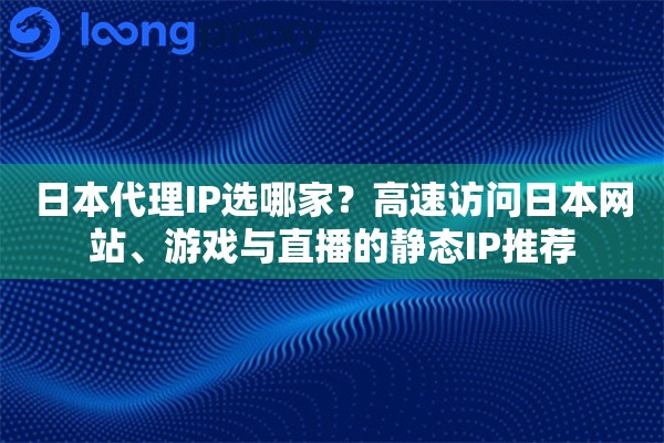 评估维度 优质服务应具备的特征 需要警惕的情况 IP类型 明确的静态住宅ISP、静态原生IP 只模糊标注“日本IP”,不说明来源 稳定性 IP长期有效,连接不掉线,高可用率承诺 IP频繁失效,需要经常手动更换 速度与带宽 线路优化,带宽充足满足业务需求 速度波动大,高峰时段明显卡顿 定位精度 支持国家、城市级别的IP选择 只能选择国家,无法细化 管理与支持 有清晰用户面板,客服响应及时 管理后台简陋,遇到问题找不到人 LoongProxy:专注于高质量日本静态IP解决方案